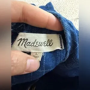 Windowpane Denim Mini Dress in Lunar Wash size Large
