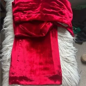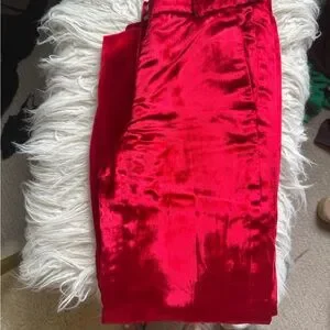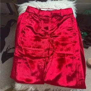 Elegant red velvet wide leg pant with a luxurious texture. Ideal for a sophisticated look and holiday parties. Worn only once and in brand new condition.