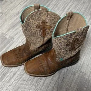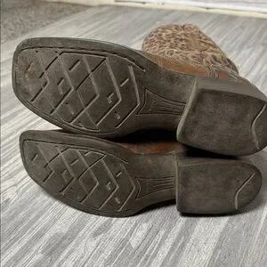 Ariat Brown Leopard Print Cowboy Boots with Cross Detail Size 4