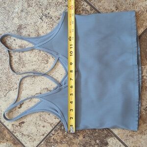 Women's XL rib crop tank in dusty blue/gray color. Shelf bra, EUC except for some staining on front panel as shown. Looks like deodorant marks, but wont come out in the wash! Maybe with a different product and more attention. Bundle and save!