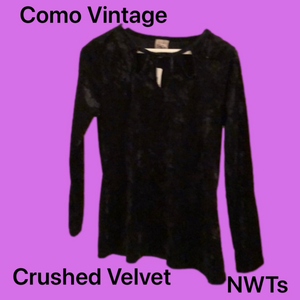 New with tags crushed velvet long sleeved top. Bought M but needed small before I got to wear it. This will go well with a black skirt or slacks.