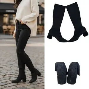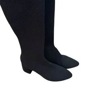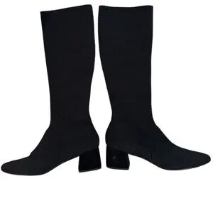 A sleek pull-on boot with a streamlined silhouette designed to hug the leg. With an almond toe and block heel, in a sustainable stretch knit made from recycled plastic bottles.