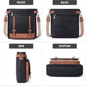 Features: Made from premium vegan PU leather, this bag is lightweight, soft, and easy to clean. It’s designed with a chic front clamshell pocket, strong magnetic buckles, and a roomy main compartment perfect for your daily essentials. The bag has multiple pockets—including an interior zipper pocket, open pocket, front zipper, and back zipper—giving you plenty of organized space for your phone, wallet, cosmetics, and more. The wide, adjustable guitar strap offers versatile wear as a crossbody or shoulder bag, perfect for travel or everyday errands. The stylish look with durable hardware makes it a great addition to any casual or chic outfit.