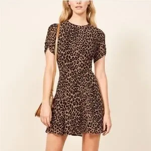 Reformation Gracie Tan and Black Leopard Print Mini Dress