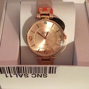 Stylish rose gold watch from Jones New York. Part of the Diamond Collection. Features a round face and elegant design.