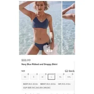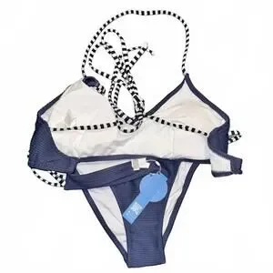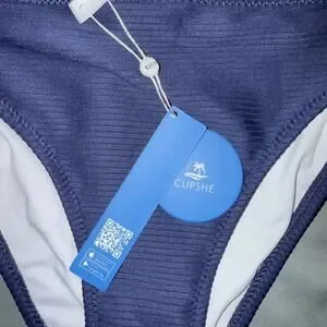 Cupshe Women's Navy ribbed and strappy Bikini Swimwear Set NWT size Large