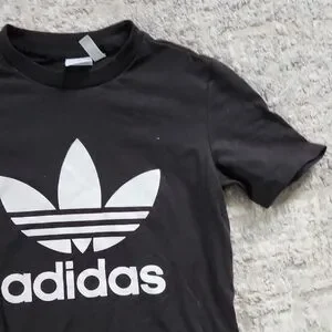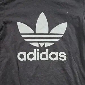 Sleek black Adidas tee. Features iconic white Trefoil logo. Perfect for casual wear.