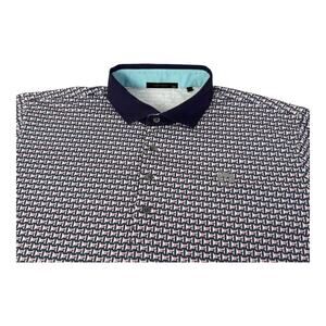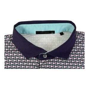 Greyson Men's 2XL Polo Shirt Blue Pink Geometric Print Short Sleeve Golf Polo