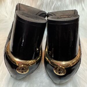 Elevate your style with these Tory Burch black heels, featuring a sleek and polished finish. Crafted with precision, these heels offer a timeless elegance perfect for formal occasions. The smooth leather and refined silhouette ensure both comfort and sophistication.