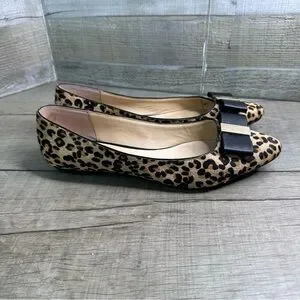 Kate S Leopard Print Norah Flats Bow Detail Calf Hair flats size 8