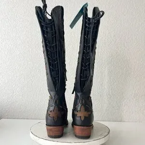 Lane Reverie Knee High Womens Cowboy Boots 6 Black Brown Western Cowgirl Lace Up