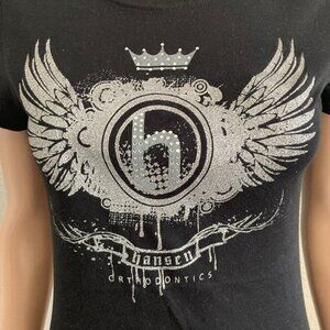 Hansen Orthodontics Las Vegas Tshirt womens Large Stretch Glitter Black Silver