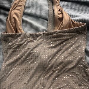 Stylish halter neck dress featuring shimmering silver accents. Perfect for special occasions.