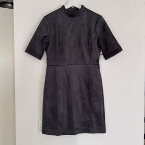 NWT Ann Taylor Dress Sz 8 Gray Faux Suede Mock Neck Short Sleeve Sheath MP $159