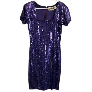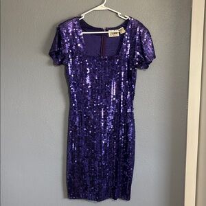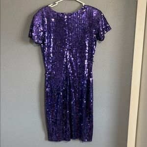 Stunning purple sequin dress with short sleeves. Perfect for parties.