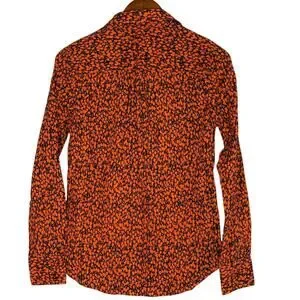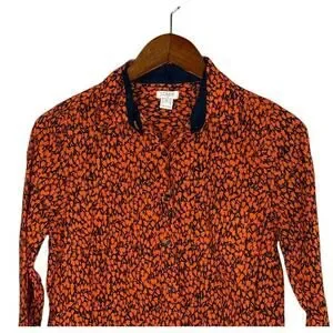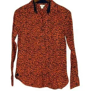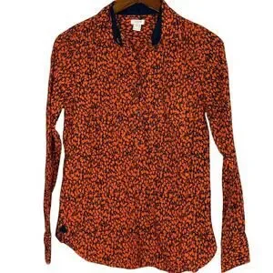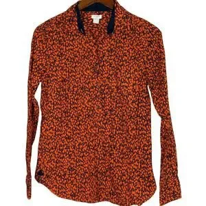 J. Crew Tulip Printed Popover Long Sleeve Collard Half Button Up Lightweight Shirt S Navy Blue Orange