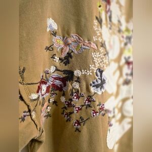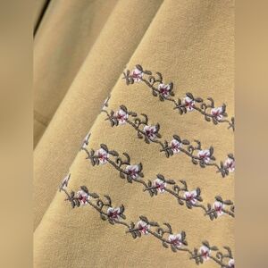 Stylish olive hoodie with intricate floral embroidery. Features a relaxed fit and cozy hood. Perfect for casual wear.