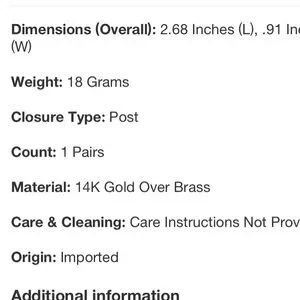 Material: 14K Gold Over Brass