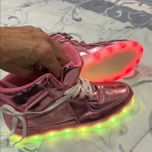 Step out in style with these pink high-top sneakers. Perfect for adding a pop of color to any outfit, these shoes offer both comfort and flair. This is a pair of Bepoaa pink metallic light-up hi-top sneakers. Size 38. US 9