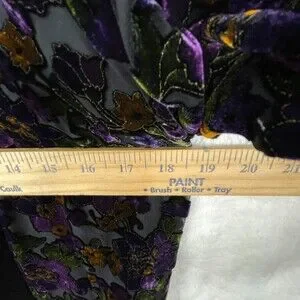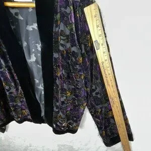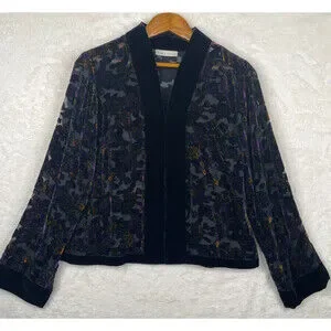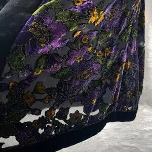 Gorgeous Vintage Lord Taylor BurnOut Open Cardigan Womens S/M Floral Black Velvet Trim Dark Fairy.See last photo for measurements.