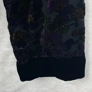 Vintage BurnOut Open Cardigan Womens S/M Floral Black Velvet Trim Dark Fairy