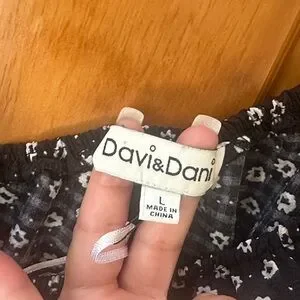 Stylish black dress with white floral design. Features a charming ruffle detail. Ideal for casual outings.