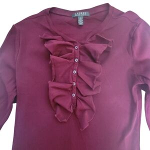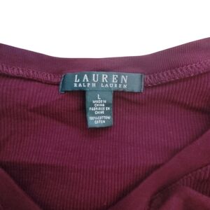 Vintage Lauren Ralph Lauren Womens (L) Burgundy Ribbed Ruffle Neck Lg Sleeve Top