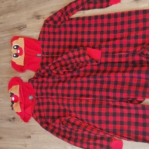 Two Red and Black Plaid Reindeer Hooded Onesies