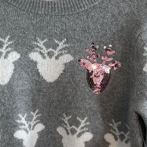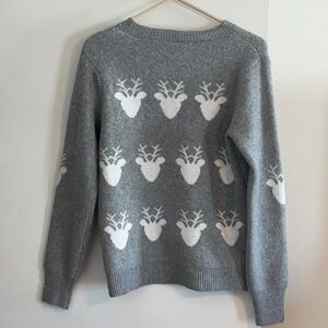 New With Tags Holiday Time Women’s Holiday/Christmas Reindeer Crew-Neck Sweater Size S {4-6} Grey and White in Color With One Sparkly Reindeer 100% Polyester