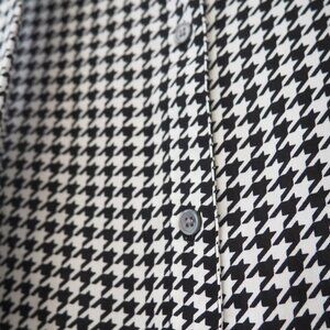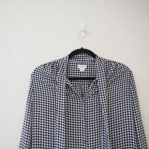J. Crew Black White Houndstooth Long Sleeve Tie-Neck Button Down Blouse sz S