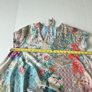 Johnny Was Tunic Top Womens Small Multicolor Boho Patchwork Floral Scalloped