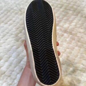 Chic White Golden Goose Sneakers with Metallic Gold & Grey Laces