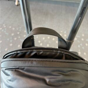 Modern quilted design. Comfortable straps. Ideal for daily use. Used a handful of times. Great size and strap for easy travel. A few small imperfections as noted in photo 7. Still looks like new overall.