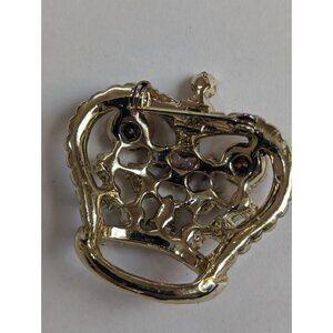 Vintage Brooch Rhinestone Crown 1960's with Multi Color Glass and Faux Pearls