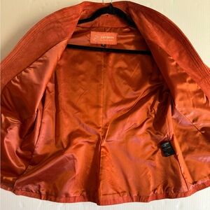 1970s Deerskin Trading Post 100% Suede open front Boho jacket in orange.Size 14