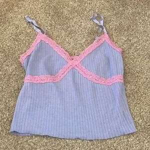 Chic lavender top/cami with delicate pink lace trim. Ideal for everyday style.
