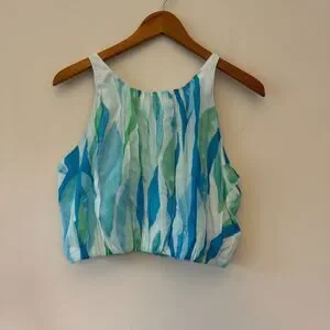 Style: Tank Top, Crop Top, Puffy/Bubble Hem, Keyhole Back, Breezy, Resort Wear, Boho