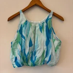 Super cute, brand new with tags Elan tank top. It features a breezy, comfortable design thanks to the elastic stretch waist that creates a flattering puffy/cropped look when worn. The top is finished with a button closure and keyhole detail at the back of the neck for a touch of style. Perfect for a chic, casual summer or resort look!