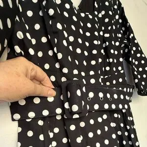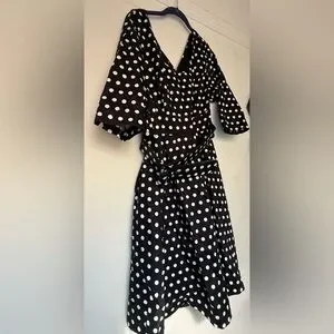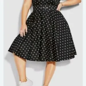 Black and white scoopneck polkadot dress by City Chic. Has tile and satin underlay which gives the skirt a fullness.