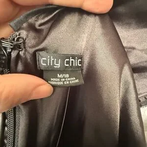 City Chic Black and White Polka Dot Dress with tulle underlay