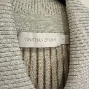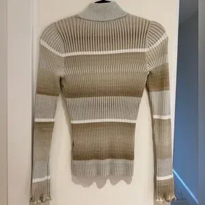 Simkhai ribbed sweater with a zip-up collar. Stretchy and comfortable. Ruffled cuff detail.