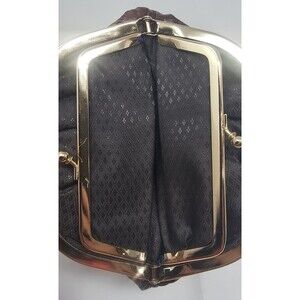 Vtg Eel Skin Leather Double Kiss Lock Brown Gold Coin Change Clutch Wallet 7x5.5