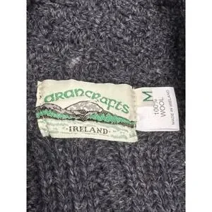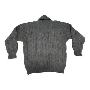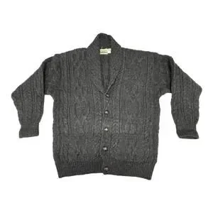 Aran Crafts Women's Gray Irish Wool Cable Knit Shawl Collar Cardigan Casual