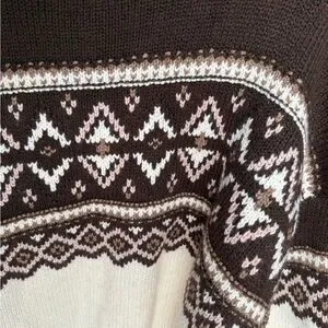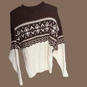 -Brown and cream colored fair isle sweater with beautiful pink & light brown accents