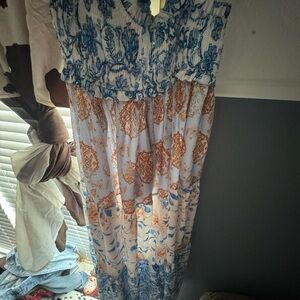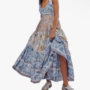 Floral Maxi Dress with Blue and Yellow Patterns