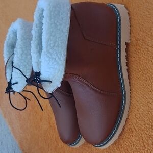 Stylish brown leather boots with cozy shearling lining. Perfect for cold weather. light weight