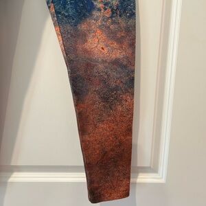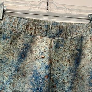 Stylish ladies leggings with a unique abstract pattern. Features shades of blue and brown. Like new condition. Elastic waist measures 14.45”, inseam is 27”.