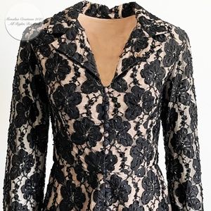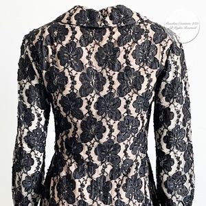 60s Opera Coat Illusion Lace Black Embellished Beaded Vintage Long Rare Formal