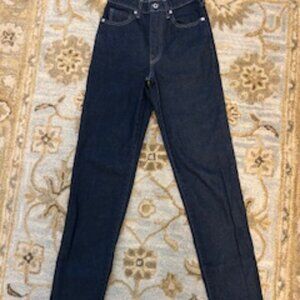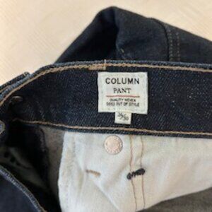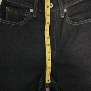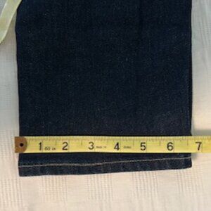 These Japanese Selvedge Column Dark Denim Jeans are new with the tags removed. They do have a tiny bit of stretch. I wear a 24 or a 25 in most Levis and these are extremely comfortable. They are amazing with the selvedge and ankle boots! If you are petite they look so chic with a wide cuff and ankle boots! The inseam is 30".