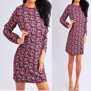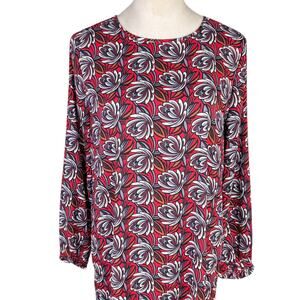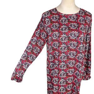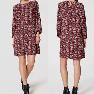 loft TALL Shadow Floral Red Print 3/4 Sleeve Lightweight Knee Length Shift Dress